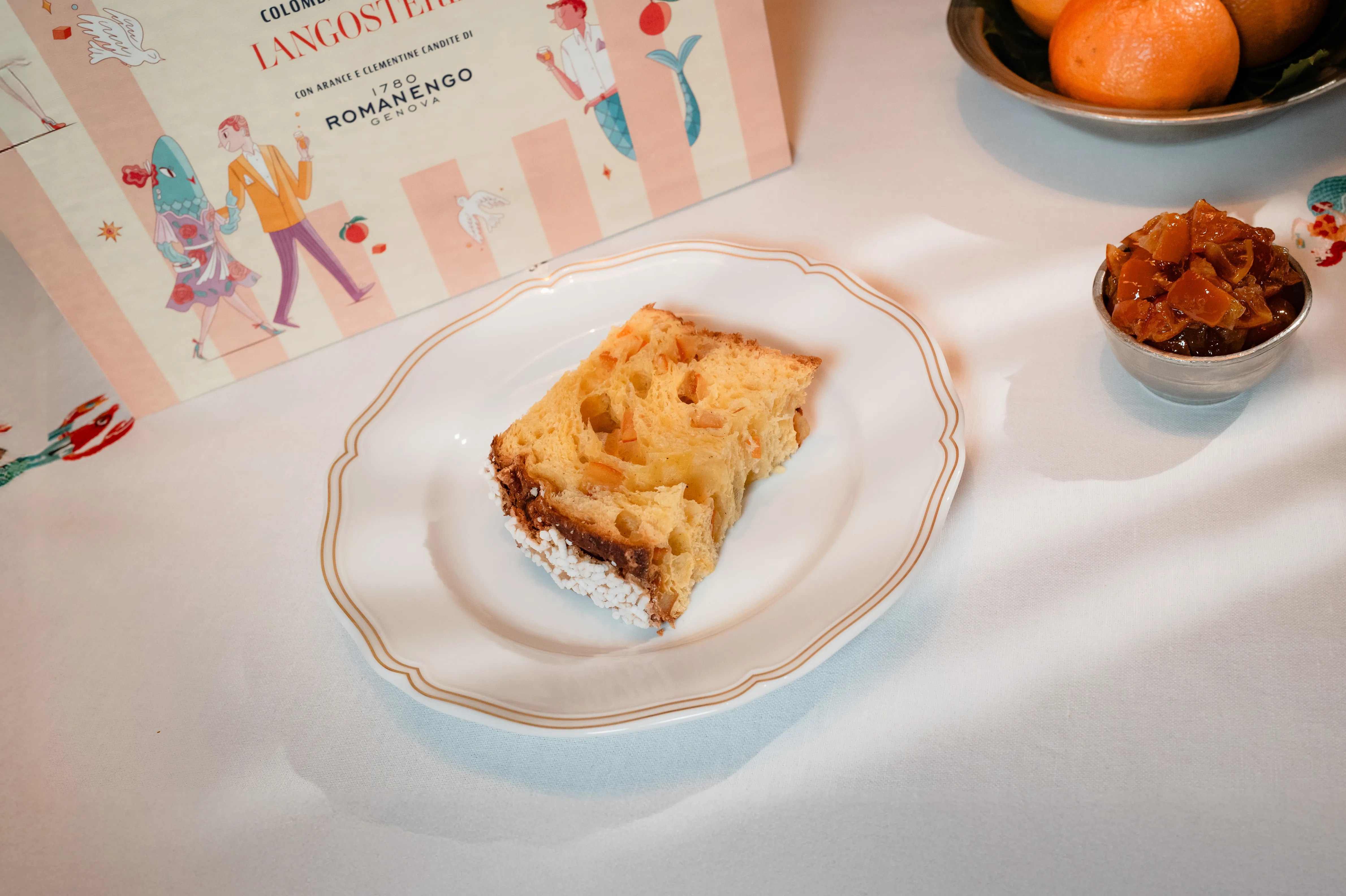 This colomba is born from the collaboration between Langosteria and Romanengo 1780, two Italian icons united by a common vision: to enhance authentic flavor through an entirely handcrafted process.