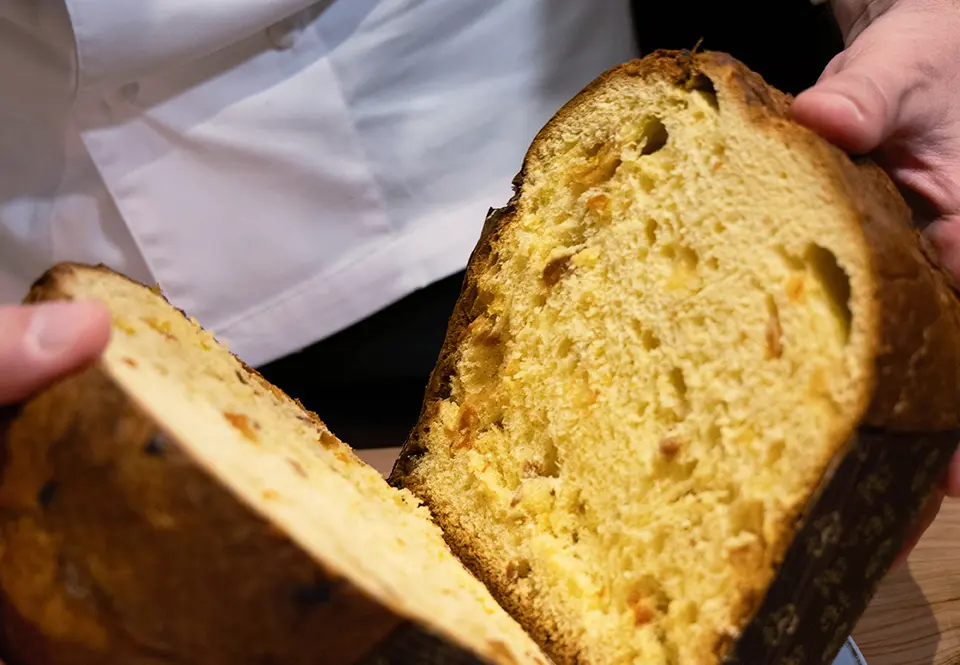 Ogni fase è scandita da pazienza e precisione: dalla lenta lievitazione con lievito madre, alla cottura attenta che preserva la morbidezza e la profondità aromatica.